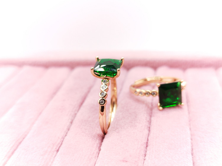 انگشتر طرح طلا نگین سبز برند ژوپینگ